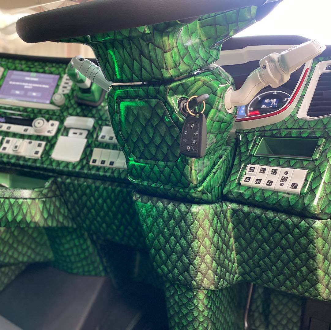 After removing the piece from the water, it's rinsed thoroughly, allowed to dry and a top coat of either matt or gloss 2k lacquer is applied to protect the design. The lacquer is wet sanded to remove any dust and the "orange peel" effect then polished to produce a mirror shine